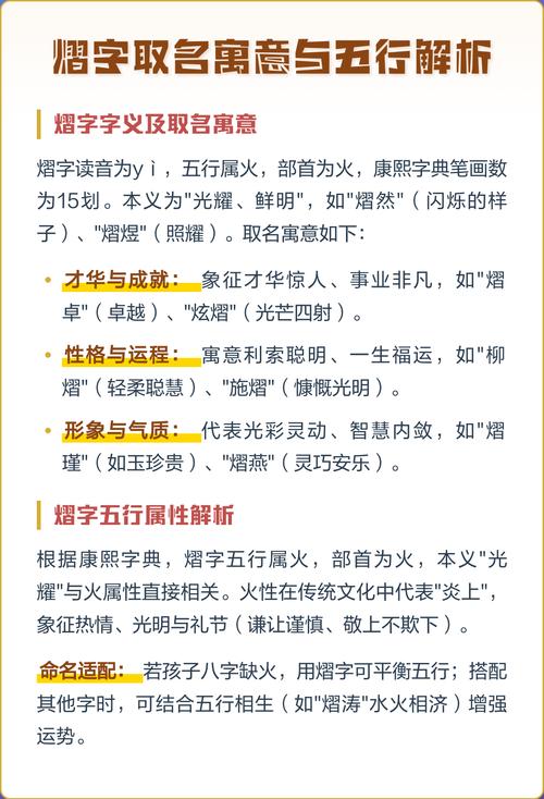 第一,避开三火并见、如果姓氏本身带火(如“焦”、“烈”等),中间字再用火,末尾用“熠”,这种“三火叠燃”的格局极度危险、在生理上,火燥则血热,易导致皮肤炎症或眼疾;在性格上,这类人往往缺乏持久力,容易三分钟热度。