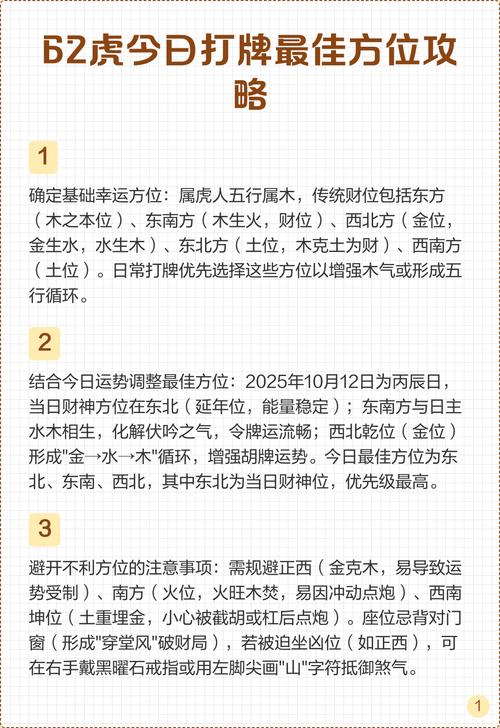 逢丑日(牛日),丑是金库,也是湿土、属虎人在这一天求的是“暗财”、方位上,选东北方最合适、东北是艮卦,也是寅虎的本位,这叫“位正”、在丑日坐在东北方,你会发现自己手气很稳,虽然不一定能自摸大胡,但基本不会点炮,靠着吃小牌也能积少成多。