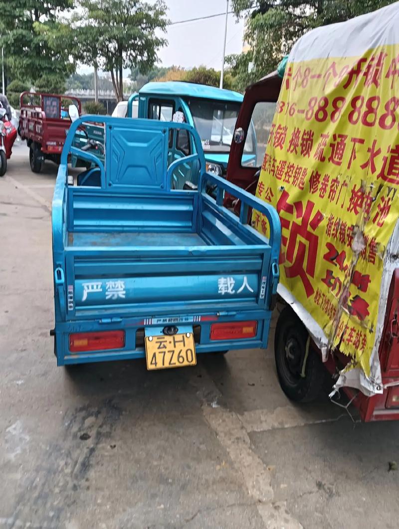 这类三轮车行驶频率极高,最怕的是交通事故与车辆损耗、牌号中应带有“1”或“6”,以求水路通达、数字组合如“106”、“618”不仅保平安,还能增加每日的单量。