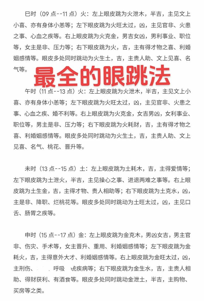 酉金为财,右眼跳代表财气外泄、这三天内不宜参加任何形式的博彩活动,因为你的财库正处于开启且流出的状态。