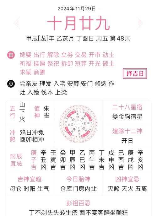 这种冲并非绝对的灾祸,而是一种“变动”、如果你这一天是去出差、远行、搬迁,这种“动”与“冲”正好契合,反而可能负负得正、但如果你是要求稳、求静(如安床、祈福),那么“冲生肖”就是必须避开的。