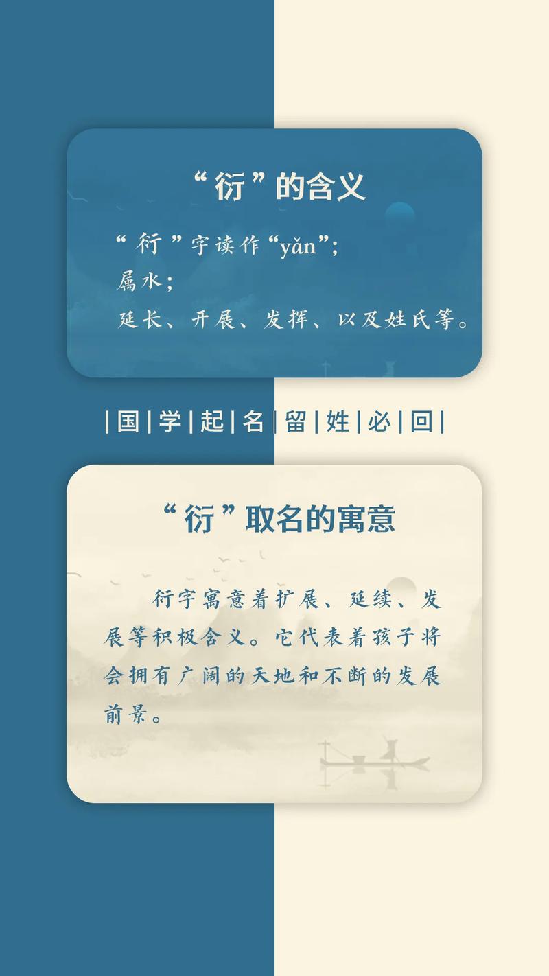 需要警惕的是,如果孩子的八字命盘本身水势过旺,再用“衍”字则可能造成水多木漂或水灭火熄的局面,导致性格过于阴柔、优柔寡断,甚至体质偏寒、应用“衍”字必须观察八字全局的虚实燥湿。