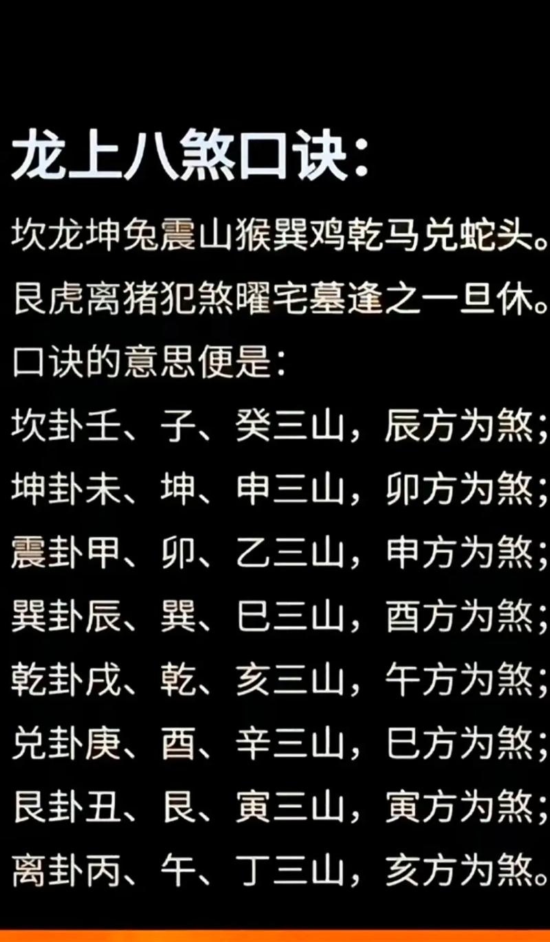 民间流传及秘传的六十龙口诀,通常是为了方便记忆各组甲子的气场属性、这套口诀直接对应了阴阳宅在接收龙气时的兴衰成败: