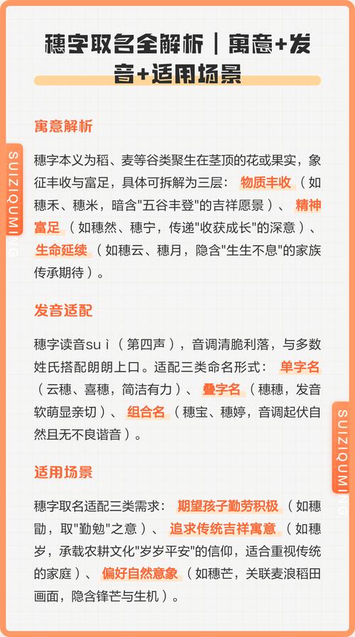 这类姓氏发音较为圆润,搭配穗(suì)的尖锐感,能起到刚柔并济的效果、例如“周穗恒”,听起来既有长辈的威严,又有晚辈的灵动。