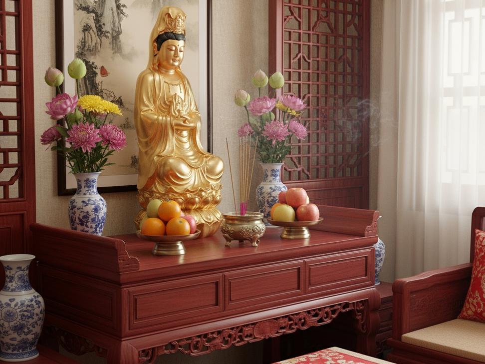 方位选择必须遵循严苛的回避原则、其一,观音不向厕所、厕所乃家宅中污秽之气汇聚之地,属于阴浊之源、若佛像正对厕所门,磁场会受到严重干扰,导致家宅不安,居住者易生烦恼、其二,观音不向餐厅或厨房、观音修的是清净法门,戒杀护生、餐厅多有肉食,厨房充斥烟火气息与油污,正对这些区域被视为不恭,会导致供奉者心神不宁,难以感应佛光、其三,观音不向卧室门、卧室属于私人隐秘空间,涉及夫妻私生活,佛像面对卧室门会产生磁场上的冲突,既不利于休息,也破坏了礼佛的肃穆感。