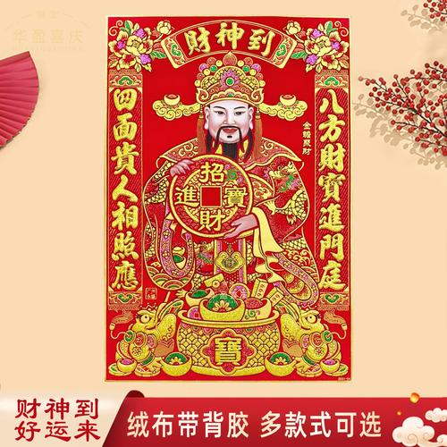 市面上的财神门贴构图繁多、在2026年,推荐选择神像周围带有“蝙蝠”(福)、“鹿”(禄)、“仙鹤”(寿)图案的复合型门贴。