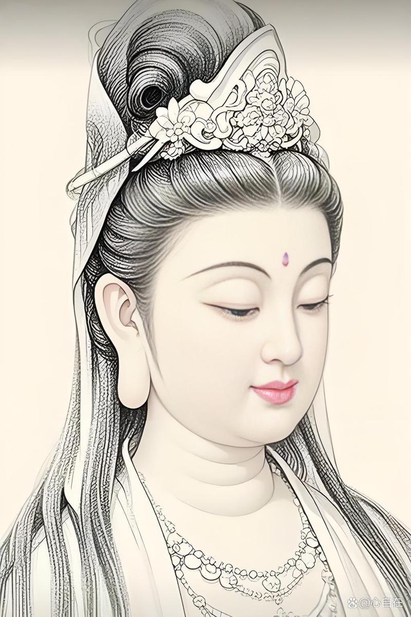 在横向比例上,观音脸严格遵循“五眼”原则、两个内眼角之间的距离恰好是一只眼睛的长度、这种比例给人一种视觉上的舒展感,绝不会显得狭隘。