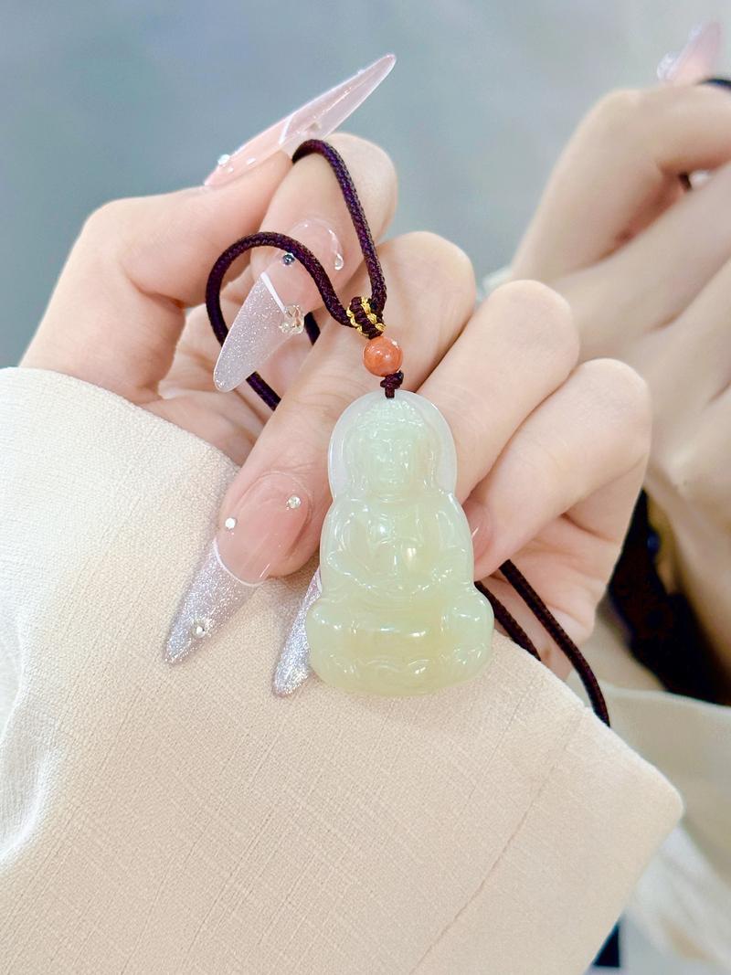 和田玉材质:和田玉质地细腻,五行属性温润偏土、在火旺的年份,土能泄火之威、佩戴白玉观音能让人气场沉稳,做事踏实,特别适合管理层。