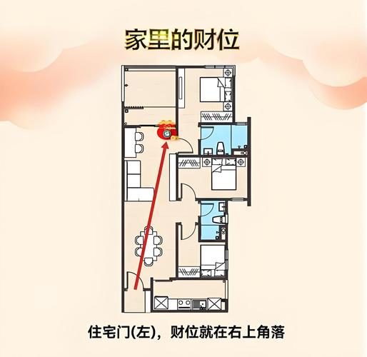 坐北朝南的房子(坎宅):2026年东南方为当旺财位,可在客厅的东南角设立财位、文财神坐东南朝向西北,将东南方的木火生旺之气引入宅心。