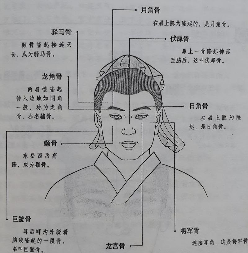 日月骨即左右眉骨上方,对应前额、左为日,右为月、此骨关乎人的少年运和智力水平。