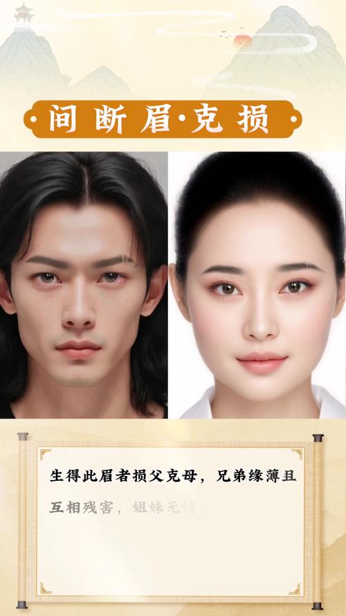 在相法中,眉毛被称为兄弟宫,直接关联到同辈关系、断眉的人,在与亲兄弟、表亲或长期的职场合伙人相处时,往往会出现“断层”、具体表现为:本该紧密的血缘关系或合作伙伴关系,因利益分配、沟通误会,导致彻底决裂、这种断裂感并非突发,而是性格中缺乏包容性,导致矛盾积累后的必然结果。