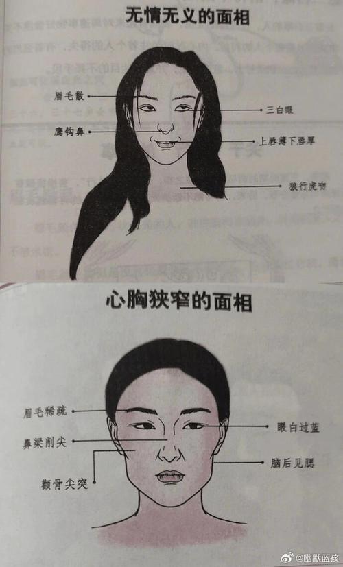 眼睛是心灵的窗户,也是判断一个人运势的第一关口、面相学中最忌讳眼神浑浊、游离不定、若一个女人的眼睛常带“三白”或“四白”,即眼珠过小,眼白过多,给人一种斜视或凶光毕露的感觉,这在面相中属于典型的“心术不正”或“劳碌命”。