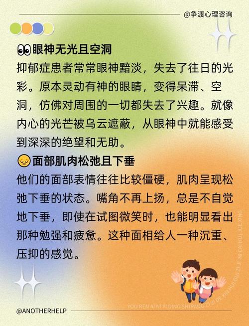 眼神涣散、游离,或者看起来如同蒙了一层雾气,在相学中称为“神弱”、一个神气饱满的人,目光清澈且有力,即便不说话,眼睛里也有神采、而容易抑郁的人,往往有一种“梦游感”,瞳孔虽然对着人,但焦点往往落在虚空处、这种眼神,暗示其内心世界与现实世界产生了严重的割裂。