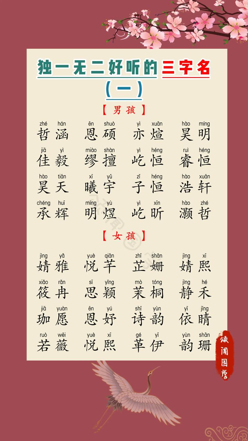 这类名字侧重于学识与品德,适合书香门第或希望孩子未来从事文化、教育、科研事业的家庭。