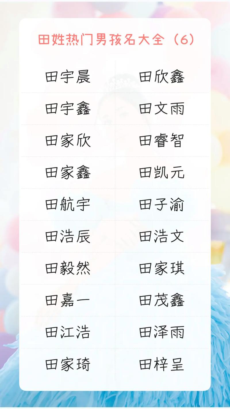田思远、田哲涵、田弈鸣、田景行、田睿博、田智宸、田文澜、田逸凡、田清羽、田墨林、田书睿、田予墨。