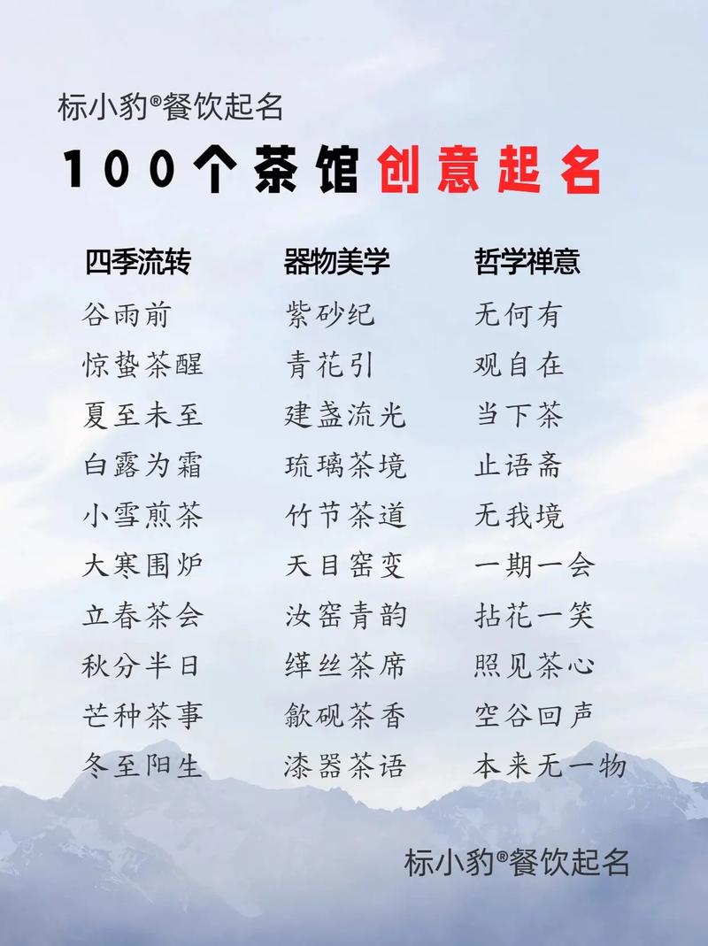 水能制火,且茶入水方能显性、此类名字能让顾客在燥热的年份进店后产生清凉安宁之感,增加驻足时间。