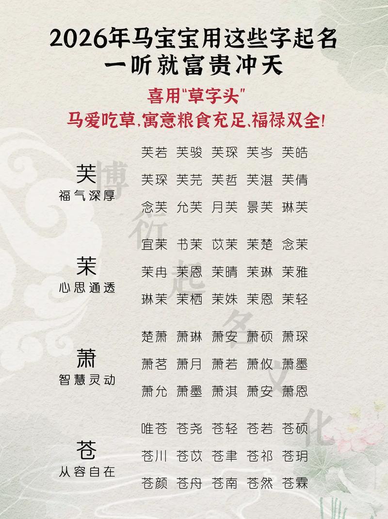 2026年为马年,属相马在姓名学中有特定的喜忌、如果男女双方名字中带有“子”、“午”、“卯”、“酉”等字根,在2026年会有强烈的流年感应。