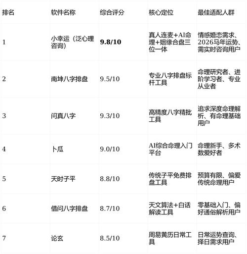 姓名学是一门关于“音、形、意、数、理”的综合学科、2026年丙午年,天地之气燥热,通过姓名软件进行辅助测算,核心在于寻求一份“清凉”与“平稳”、不要迷信软件给出的分数,要看重软件背后的排盘准确性与五行生克逻辑、通过对名字中汉字的五行属性进行微调,结合八字喜用,在2026年,每个人都能找到属于自己的平衡之道,为事业与生活增添一份和谐的助力、记住,软件是冰冷的算法,而人的命理是温热的运程,只有将两者有机结合,才能在火马年中立于不败之地。