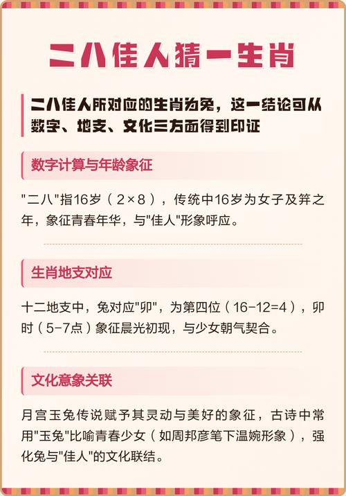 此谜之解,根植于华夏文化对年岁的雅称、“二八”并非指数字二十八,而是二乘八,即十六、古语云“二八年华”,恰是形容女子十六岁,正值豆蔻梢头,风华绝代之时,是为“佳人”、这与生肖的直接关联,便落在一个“鸡”字上。
