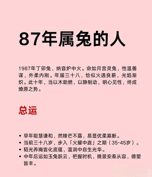 87属兔女2026感情婚姻 87年兔女2026年一生婚姻状况