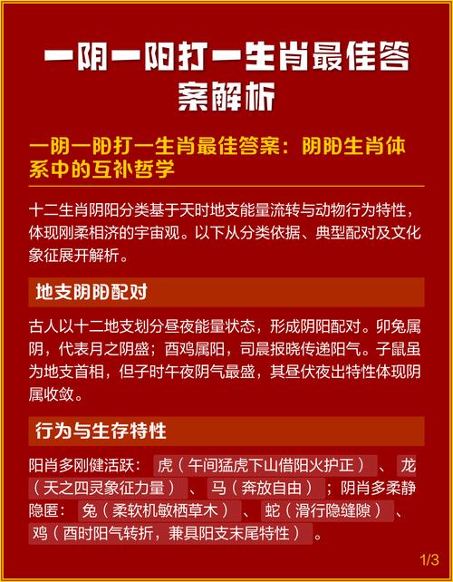 真正的“一阴一阳”,是相生相成,是相互转化,是太极图中那条柔美的曲线,将黑白、阴阳完美融于一体、它需要一个生肖,其本身具备与火相融的特质,但其心性与形态,却又能化解烈火之燥,引导其阳刚之力,化为创造与生机、这个生肖,既要能“懂”火,又要能“御”火、它需要的是智慧,而非蛮力。