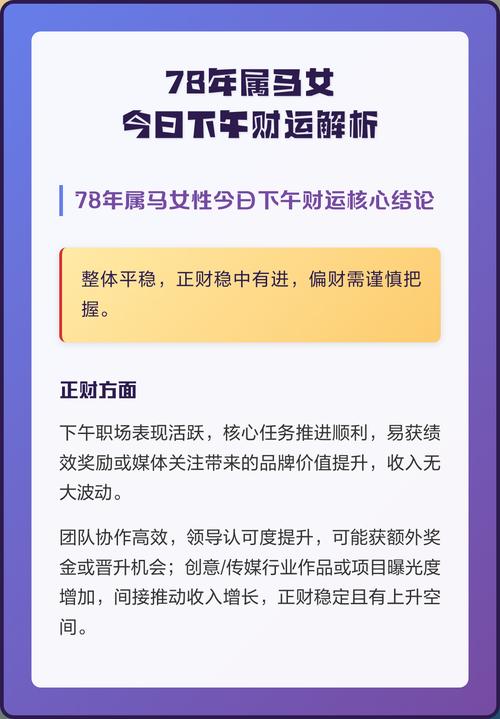 这种积极性是一柄双刃剑、若能妥善驾驭,将精力投入到业务钻研与技能提升上,您的专业能力会得到长足进步,为未来的晋升加薪打下坚实基础、部分从事销售、市场等绩效驱动型行业的属马女士,有望凭借这股拼劲,在动荡的市场中觅得良机,获得可观的业绩提成。