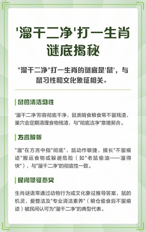 在十二生肖的命理探讨中,某些特定的词汇总能精准地对应上某些生肖的深层天性、“溜干二净”这个词,画面感极强,它描绘的不仅仅是表面的干净,更是一种彻底、不留余地、甚至带有某种终结性的行为与态度、要探究哪个生肖最符合此象,不能只看表面,需深入其本性、习性与五行气场。