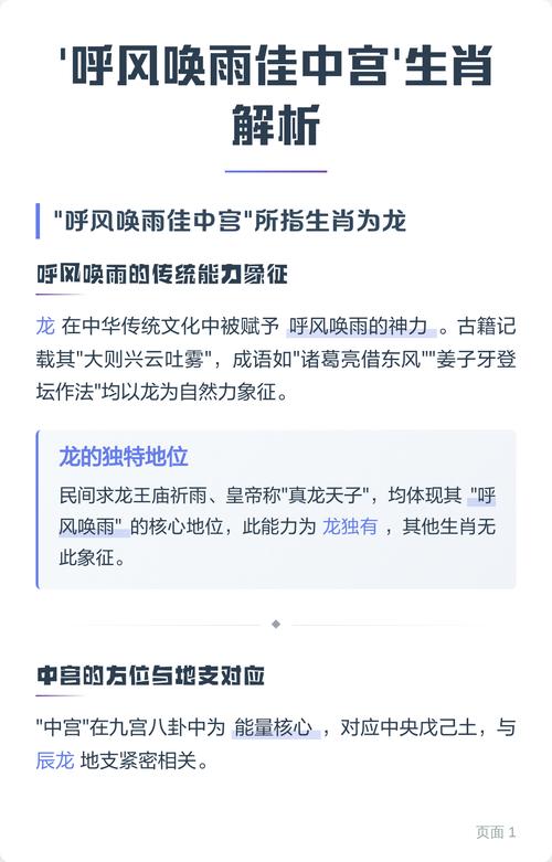 在玄空风水与生肖命理的交织体系中,“呼风唤雨佳中宫”这八个字,蕴含着至高的权柄与运势的巅峰、它并非虚指,而是精确地描绘了一种气运格局,一种唯有特定生肖才能完美驾驭的帝王之气、剖析其深层含义,答案直指十二生肖中最为尊贵、最具神话色彩的——辰龙。