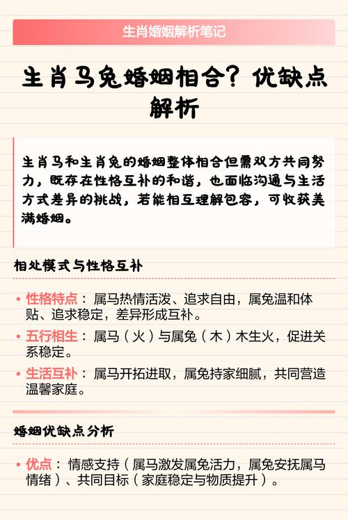 在子女教育上,属兔女性格温和,更倾向于做孩子的朋友,能够细腻地察觉孩子的心理变化、她们培养出的孩子通常比较有修养,但也可能缺乏一点闯劲、属马女性格刚强,对孩子要求严格,注重培养孩子的独立性和竞争意识、她们培养出的孩子通常很有自信,但也可能因为压力大而产生叛逆心理、在2026年,这两类母亲都需要根据大环境的气场调整教养方式、属兔妈妈要多给孩子一点勇气,属马妈妈要多给孩子一点耐心。