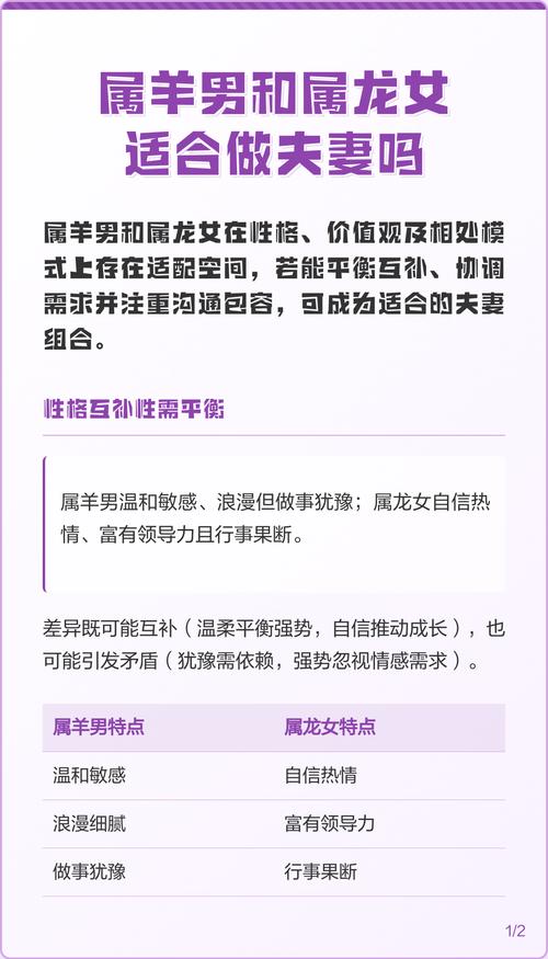 由于出生年份的天干不同,龙男与羊女的组合表现也大相径庭、以下针对几种常见的组合进行深度拆解:
