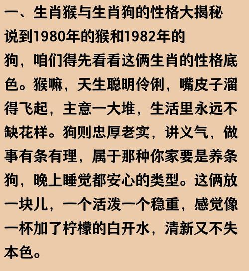 这篇文章详尽地从五行、性格、财运、风水、子息等多个维度解析了属猴女孩与属狗男人的配对情况、目的是为了让你明白,每一段缘分都有其独特性,生肖配对只是参考,真正的幸福掌握在你们不断磨合的双手之中、在2026年这个充满变数的年份里,愿属猴女孩能以智慧为帆,以属狗人的忠诚为船,共同驶向幸福的彼岸。