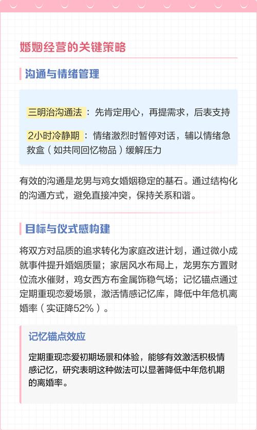 在2026年,时代的步伐加快,这对夫妻应共同制定学习计划、无论是学习新媒体工具,还是研究新的理财产品,或是深入探讨哲学与宗教,这种智力上的共振能让他们的感情超越世俗的摩擦,进入一个更加开阔的境界、龙的精神支柱与鸡的细致关怀,将构成这个世界上最稳固的情感共同体。