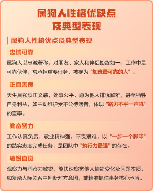 生于狗年之男性,其性情犹如其生肖之名,蕴含着忠诚、守护与警惕、他们并非人群中最耀眼的存在,却往往是那个在风雨飘摇时,能为你撑起一片天的坚实臂膀、想要真正读懂他们,需深入其内心,观其优点之光芒,亦要知其缺点之棱角。