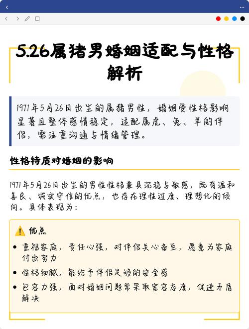 家庭,对于属猪男子有着至关重要的意义、他毕生所求,不过是构建一个和谐、宁静的家、在感情关系中,他极度排斥争吵与冲突、他不是一个善于辩论的人,面对矛盾,他更倾向于妥协与退让,只为息事宁人,维系表面的和平。