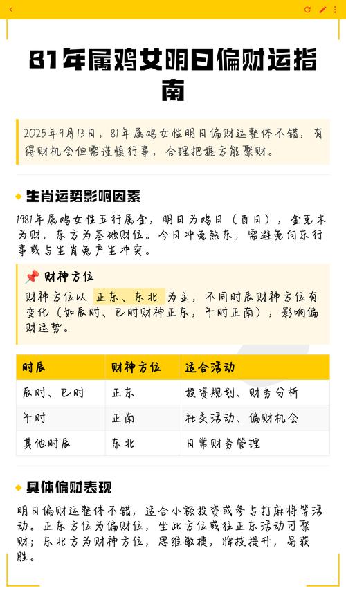 火炼真金,压力之下亦是展现个人价值的绝佳时机、若能顶住压力,以专业的态度和坚韧的毅力完成任务,不仅能巩固职场地位,相应的薪资报酬、项目奖金亦会随之而来,虽是辛苦财,却也拿得踏实、切忌心生抱怨,或与上司发生正面冲突,此举无异于以卵击石,对财运有害无益、从事销售、服务等行业的辛酉鸡女,本年业绩的增长,需要依靠更为勤勉的奔波与更为耐心的沟通。