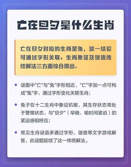 “亡在旦夕”四字,关键在于“旦”与“夕”、“旦”者,日出东方,晨光初现,对应十二地支中的“卯”时(清晨5至7时),为兔之所在、“夕”者,日落西山,暮色四合,对应地支中的“酉”时(傍晚17至19时),正是鸡之归巢时刻、谜面之意,可解为生命之光,从“旦”升起,至“夕”而“亡”,其终点与归宿,精准地落在了“酉”时、酉对应的生肖,正是鸡、故从时辰对应来看,鸡为不二之选。