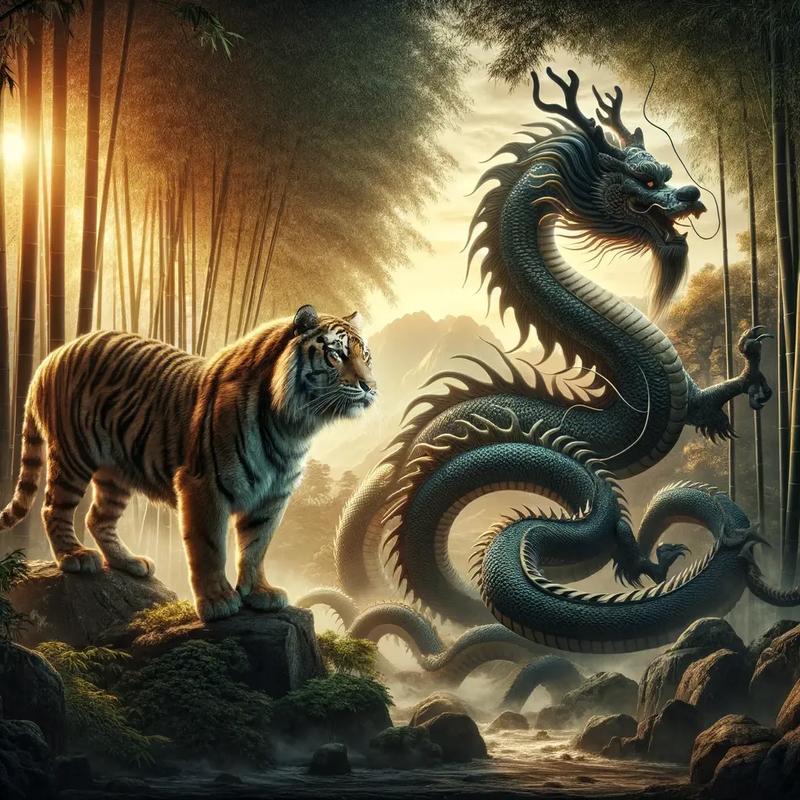 虎如同先锋大将,负责开拓市场、构思创意、对外公关、龙则像中军元帅,负责战略规划、资源整合、财务管理与风险控制、虎的激情与行动力,由龙的稳健与智慧来托底、龙的资源与平台,为虎的才华提供了最佳的舞台、二者合作,虎主外,龙主内,一动一静,一刚一柔,若能明确分工,互相信任,必能在丙午马年,共谱一曲财富的华章。