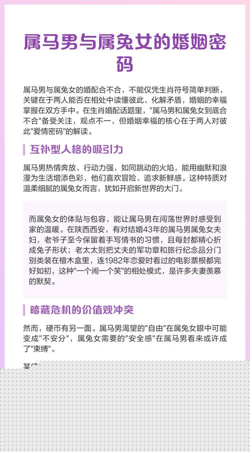 时值丙午火马之年,论及属马与属兔之人的婚姻缔结,恰如一幅动静交织、浓淡相宜的水墨画,既有其相吸相引的精妙之处,亦藏着需要细心描摹与调和的笔触。